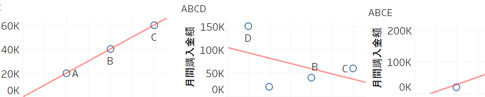 回帰直線の動き スモールデータで確認してみる 大量データの回帰分析では、一つや二つのデータをを削除したり入れ替えたりしたところで、回帰分析結果は微動だにしません。 そこで、スモールデータサンプルを使…